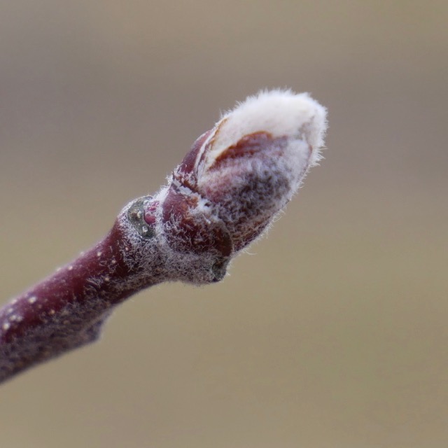 Note that apple green tip should occur app. 101 DD (Base 43), although obviously there is a range. We are still at silver tip (5-April) in Belchertown. The forecast is to be at app. 100 plus degree days Base 43 on 11-Apri. Hence, my prediction is to be at green tip next Tuesday (or sooner, a little showing here if you look hard). Good time then to be getting a copper spray on, perhaps include a fungicide if the apple scab forecast looks severe.