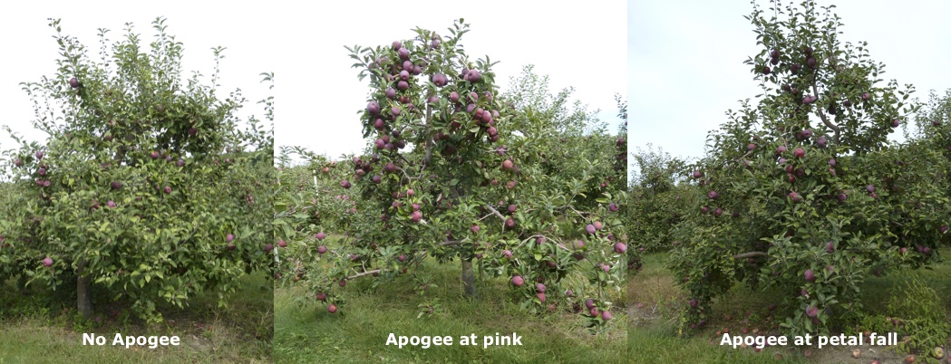 Following a relatively mild winter, the spring weather has inflicted varying amounts of damage on apple spurs. The extent of damage and the impact that this will have on the final crop load has yet to be determined. Return bloom is less this year in many blocks due to the heavy set last year. Therefore growth control may be an important component in block management this year. Apogee (BASF) and Kudos (Fine Americas) are the two prohexadione-calcium products available to control vegetative growth. Most are familiar with and have used one or both of these products. For the past few years we have recommended using a low dose of Apogee early in the season with the idea that it will reduce the impact that it may have on counteracting the efficacy of chemical thinners. It is well documented in the literature and through experience of many that Apogee can increase fruit set. While in most years we generally hope to minimize increases in fruit set, this year we may want to take advantage of this particular characteristic of Apogee.