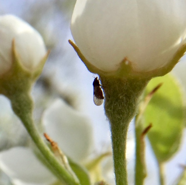 Pear psylla Adults are laying eggs. Surround is a good option to deter egglaying, but doubt it is used by many. Suggested conventional insecticide approaches would include Portal, Exirel, Centaur, or Sivanto. Be sure bees are done before applying insecticides. |