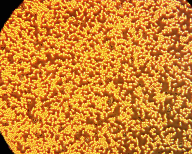 Scab. If you’re not spraying for scab whenever the weather gives you a chance this week, you might want to consider getting out of the apple business. We can confirm that you should be playing it safe, using the highest rates of the most effective fungicides you have during the present and predicted wet weather over the next week. Here is a picture Liz Garofalo took of a cloud of spores ejected in a 10-minute lab test Monday. It is a heavy release. Therfore, scab infection risk is peaking.