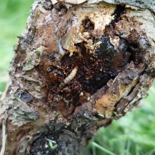 Dogwood borer in dwarf tree rootstock. Ugh, a bad situation. Recommendation: keep bases of dwarf apple trees clean, i.e. free from weeds and debris. Scout for infestation (a fun job). Deploy mating disruption. Use Lorsban as a directed spray to trunks/bases of trees during the month of June. |