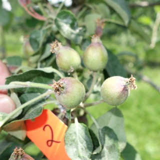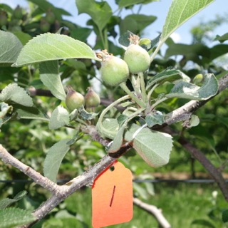![]() This spur (Fuji) with two growing fruit probably does not need further chemical thinning |