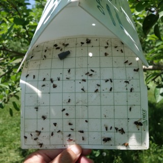 The good news just keeps coming! Oriental fruit moth, which has been flying since late April, is still out and about. Those of you who haven’t sprayed your peach blocks with an insecticide this year might want to keep an eye out for shoot tip flagging, possible evidence of newly hatched larva feeding inside the tender green tissue, if you look closely you may even see the oviposition wound. The next opportunity to treat OFM will be coming up in late June, early July, if warranted. Mating disruption is a good tool to use for this pest. There has been some debate (at least between Jon and I) as to whether or not OFM will move into apples to lay their next round of eggs with no peach crop this year. First generation adult codling moth is also out in force. Thankfully, insecticide applications targeted at plum curculio and apple maggot should clean this one up too. Rounding out the lepidopteron trifecta this week is the obliquebanded leafroller. No sustained trap captures, yet, but the first has been found in a pheromone trap. It’s too soon to treat for this just yet, again, looking into late June for an insecticide application. Some good news here, though, the treatment windows overlap nicely, so, one good spray application may do.
