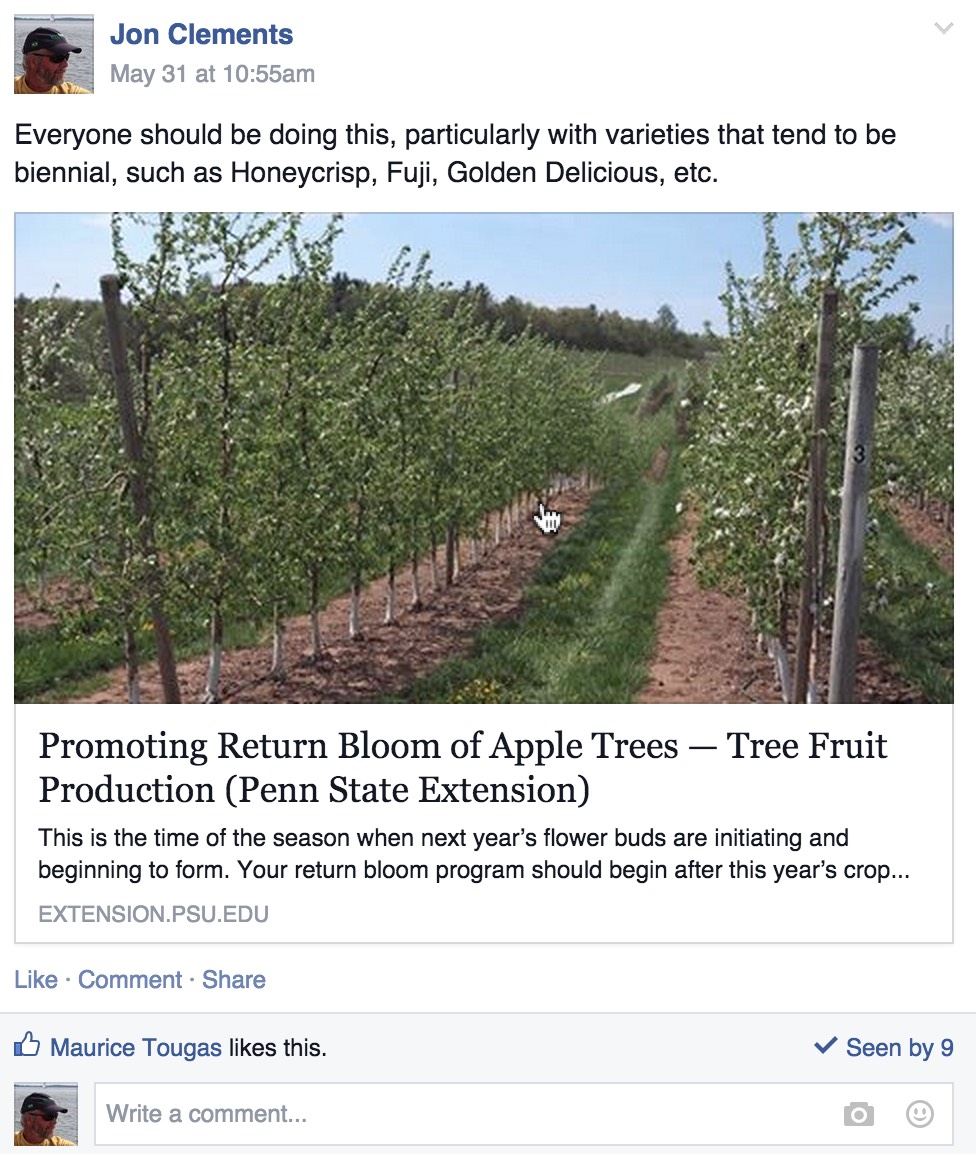Again, this is an abbreviated Healthy Fruit as I am out-of-state Tues.-Fri. It will consist of individual HF e-mail "Bites" sent out during the week of May 31, 2015. JC
