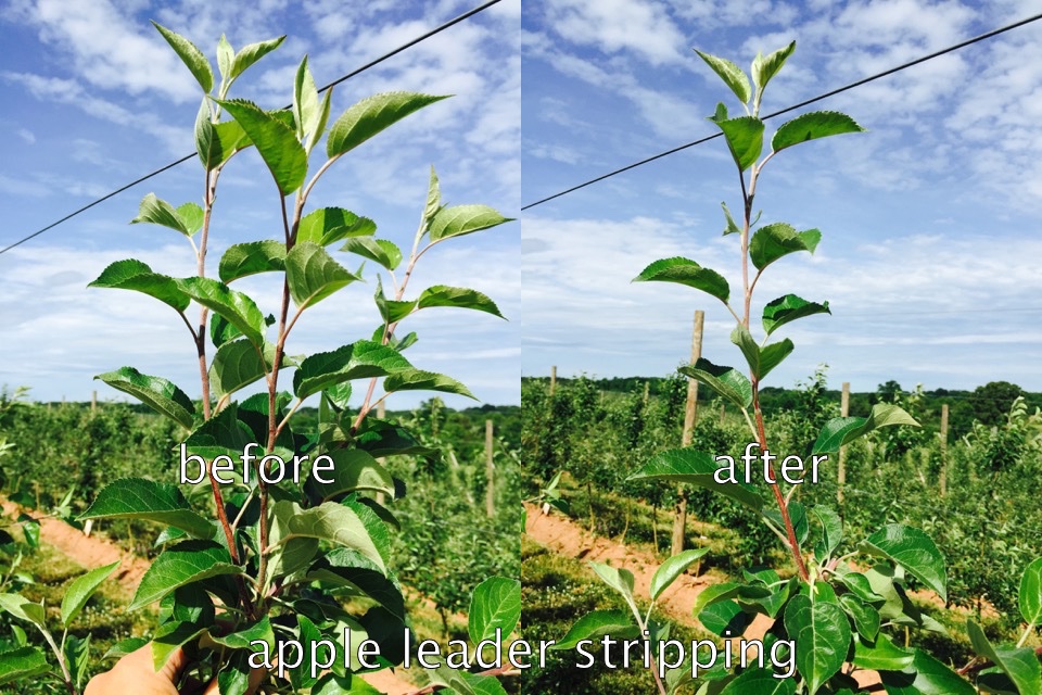 The best advice I could give you right now is to make sure you "strip" the leaders of young apple trees to avoid becomong top-heavy and maintain a strong central leader. There is some debate whether it is best to cut them with (sharp) pruners (right at the base of the shoot) or is it OK to just "strip" them out by hand? I do both, depending on my mood and what I have at hand. If stripping by hand, just avoid taking too much of the soft bark off on the leader adjacent to the shoot being stripped. And only do during dry weather to avoid the spread of disease. JC