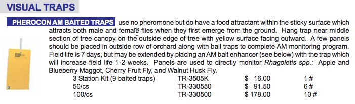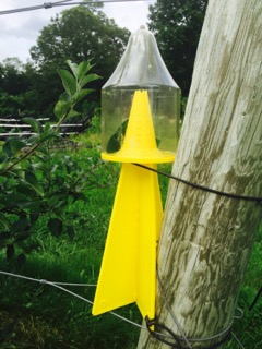 See The way I see it above for some comments on insect management. Sprays for codling moth and obliquebanded leafroller should have been applied by now, or if not, very soon, assuming you have these pests. (I bet you do.) Potato leafhopper (PLH) is still rolling in, be sure to scout young blocks of apples for presence/absence and treat as necessary. Too early to treat for apple maggot fly, but I bet with the moist soil conditions they are starting to emerge. Monitor with yellow sticky traps (below) or red spheres. Both available from Great Lakes IPM.