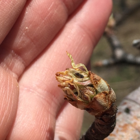 ![]() Pear psylla adult start laying eggs in the spring before bud break -- a good oil spray at this timing is the start of your defense against this pest |