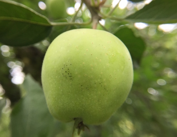 No big surprise given the wet season that apple scab continues to show up. This year seems to have been especially tough for scab management. Must be payback for last year’s easy scab season. Flyspeck is beginning to show up. The first incidence was noticed yesterday. Seems a little odd not to have seen any sooner. No big rain in the immediate future, but it never hurts to keep your eye on the forecast!