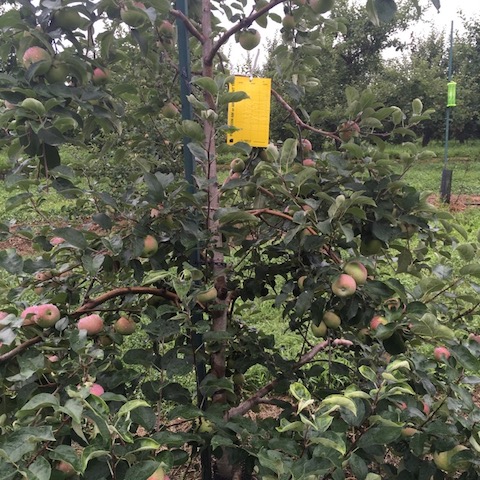 • We also put out some baited, yellow sticky traps for Apple Maggot Fly (AMF) in addition to our red stick spheres:
