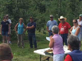 A fresh look at IPM on diversified farms in Massachusetts from a member of the UMass eIPM fruit and vegetable team Pictured, left, Sonia Schloemann and Elizabeth Garofalo present IPM management strategies on diversified fruit & vegetable farms (UMass eIPM) at the Massachusetts Fruit Growers' Assoc. Summer Meeting at Red Apple Farm, Phillipston, MA |