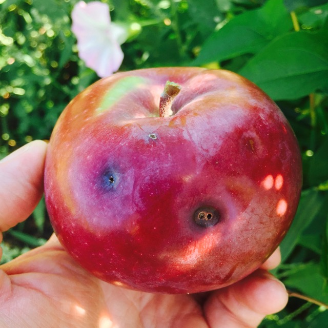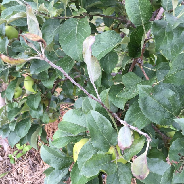 "Likely" dock sawfly damage to RubyMac apple, late August 2015 in Massachusetts orchard