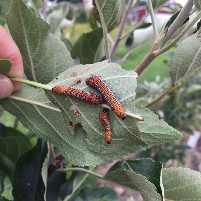 Azalea caterpillars (Datana sp.) on appl leaves, 1-August 2016, UMass Orchard