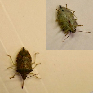Stink bug injury? Maybe? A reminder that native stink bugs definitely pose a risk to peaches and apples -- like this onespotted stink bug (right) found in a peach block at the UMass Orchard. A grower also reported what appeared to be significant stink bug injury in Brock apples recently. Maintaining some insecticide coverage for the next few weeks is not a bad idea if you think you have a problem with this pest. So far we have found no Brown Marmorated Stink Bug in our fairly extensive BMSB trapping network...although a consultant has reported trapping a few in two orchards. | ![]() |
