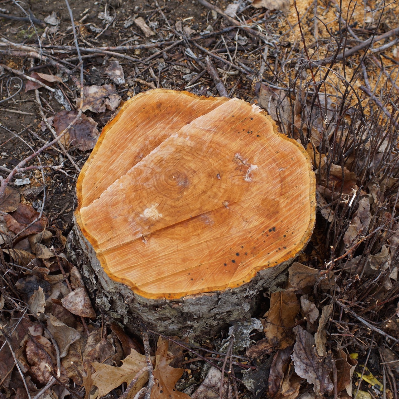 "The second test is more like the spore trapping tests. Sections of leaves from the same collection are cut and soaked in water and stuck to the lid of petri plates. 2 microscope slides are placed in the bottoms of the petri plates, the plates are closed and set in filtered natural light for 1.5-2 hours. The slides are then examined for released ascopores. RESULTS: there were no released ascospores.