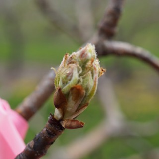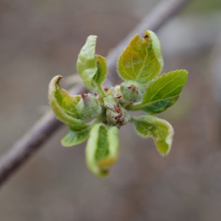 ![]() apple bud 19-April with 5-6 individul flowers; a bit out of focus, but note the middle buds are not separating and expanding (they are dead) but the two outer buds are moving |