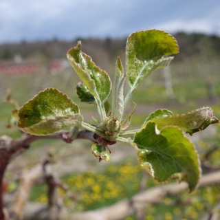• I think the thing on everyone's mind is the condition of apple flower buds. In Belchertown, we are seeing widespread injury (browning, crinkling) of spur leaves. That can't be good for the health of the flower buds and what developing fruit we may have. It's not too late (do it before bloom) to apply the 'spring tonic' foliar spray, see Prebloom Nutrient Applications for Apple Trees for details. There are big difference in varieties in terms of how the flower buds are developing and/or look. In general, McIntosh-type apples are OK, Macoun in particular looks good. Cortland less so. Gala are variable, as are many other varieties. Honeycrisp really appear to have taken it on the chin, there are many, many buds that were there but just aren't developing. This is somewhat surprising, given the fact Honeycrisp buds were not as far advanced as others when we had the cold in early April. The king flower bud is frequently damaged across-the-board, so that is going to make thinning difficult. Sweet cherries are generally in tough shape (no bloom), however, tart cherries look pretty good. I have four test pluot trees that were in full bloom last week, go figure, although I hear plums are in better shape than all other stone fruit. What to look for as we go down the road? Mis-shapen/deformed flowers, missing flower parts (petals, stamens, pistil), damaged spur leaves. I'd also be watching for short flower stems and delayed emergence as the flowers separate, that could be an indicator of vascular/translocation (spur wood damage?) issues. All would be signs of trouble. And of course we will need good pollination weather to set this apple crop. Let's keep our fingers crossed.