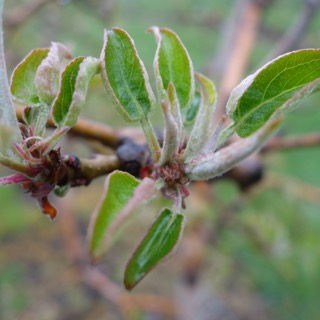 ![]() Honeycrisp apple, 05/02/16 - this looks more-or-less "normal" but I would want to wait and see how it unfurls and make sure all the flower parts are there before passing final judgment |