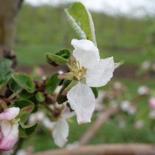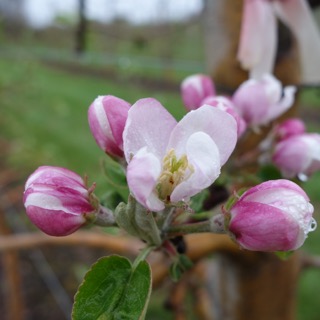 ![]() McIntosh apple, 05/02/16 - this king flower looks OK, note the green pistils in center (look close, trust me, they are there); has a chance of setting a fruit |