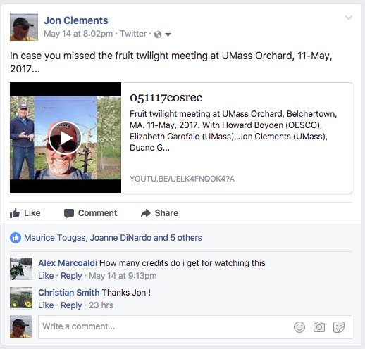 • The New England Extension tree fruit specialists -- which include myself and Dan Cooley at UMass. Mary Concklin at UConn, Heather Faurbert at URI, Terry Bradshaw at UVM, George Hamilton and Alan Eaton at UNH, and Glen Koehler and Renae Moran at UMaine -- have started to contribute to an on-line edition of the New England Tree Fruit Management Guide. Call it a beta version if you will, but we think it has some value in 2017 as we continue to work on it. (Consider it dynamic? Work-in-progress? Under construction?) But many of the spray tables (for lack of a better description) are filled out. Note that is it easy to print any of the sections, if you want to have old-school reference, for examplle, to hang on your spray shed wall. Also, it is quite mobile-friendly so make a home screen shortcut to here: http://netreefruit.org.