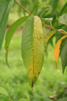 Bacterial spot of peaches. We have had increasing problems with bacterial spot on peaches in recent years. For future reference, the first two steps in managing bacterial spot are to plant cultivars that are relatively resistant. A list of cultivars with their susceptibility to bacterial spot from the New Jersey Commercial Tree Fruit Production Guide is available here. The second step is to use copper prior to bloom to reduce inoculum. Remember that for next season.
