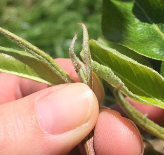 By now, any mistakes in scab sprays should start to be showing up. Infections from early May will have had time to cause visible scab on leaves by this weekend. If there is scab, then that means rain can lead to secondary infections, so don’t stop scab fungicide applications until it is clear that that no primary infections have gotten started in a block.