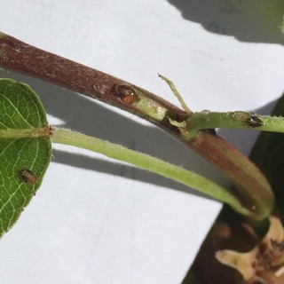 Pear psylla is still on the move and laying eggs! This tiny, cicada-like insect has four generations per season and goes through five nymphal instars (early-the yellow one- and late- the brownish one- pictured below). If you find this critter (check ten shoots on five trees per block, the action threshold for this time of year is 1.5 nymphs per shoot) in your pears there are still a few things left you can do to mitigate populations leading into next season. The window for a petal fall spray application has passed but there will be another opportunity to treat in mid-June (many options, consult New England Tree Fruit Management Guide). Psylla has a high likelihood of resistance development to insecticides so, if you find your trees are over threshold, be sure to rotate active ingredients. Aside from chemical control, you do have some cultural options as well. In late June or early July, removing water sprouts will minimize the feeding sites for the third and fourth generations. Minimizing hard pruning and using only the minimum nitrogen required to maintain crop health will also minimize tender green tissue present for this pest to feed on.