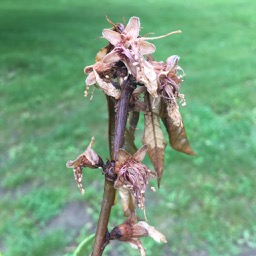 The answer is that there is, because the fungus can survive in other tissue besides old mummified fruit. The evidence showed up in one of Jon Clement’s variety trials this week, in the form of brown rot blossom blight. This is the stage of the disease that gets into blossoms, and then into wood. Twigs can be girdled and the blossom infections produce inoculum that will rain down on ripening fruit as they develop.