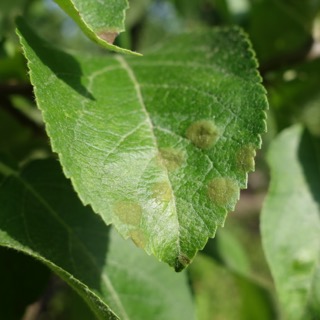 ![]() Apple scab lesions on unsprayed trees started showing up 1-2 weeks ago. BTW, if you are seeing any of this now, well you better keep spraying fungicide (Captan) when it rains. Damn! |