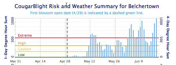 Fig. 1. NEWA CougarBlight (fire blight) Risk and Weather Summary for Belchertown