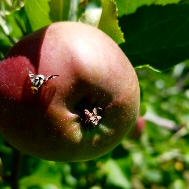 Apple maggot fly on apple in central Massachusetts orchard 30-June, 2016.