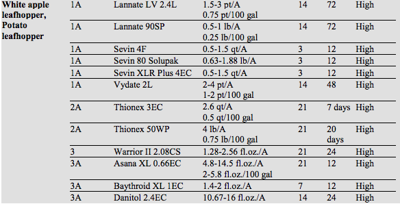 • Potato leafhopper (PLH) are here for sure, right on time. Threshold for tolerance is ZERO in new plantings, consult NETFMG (or below) for treatment options, many insecticides are effective, however, Assail, and imidacloprid would be good "softer" (i.e., beneficial insect-friendly) options.