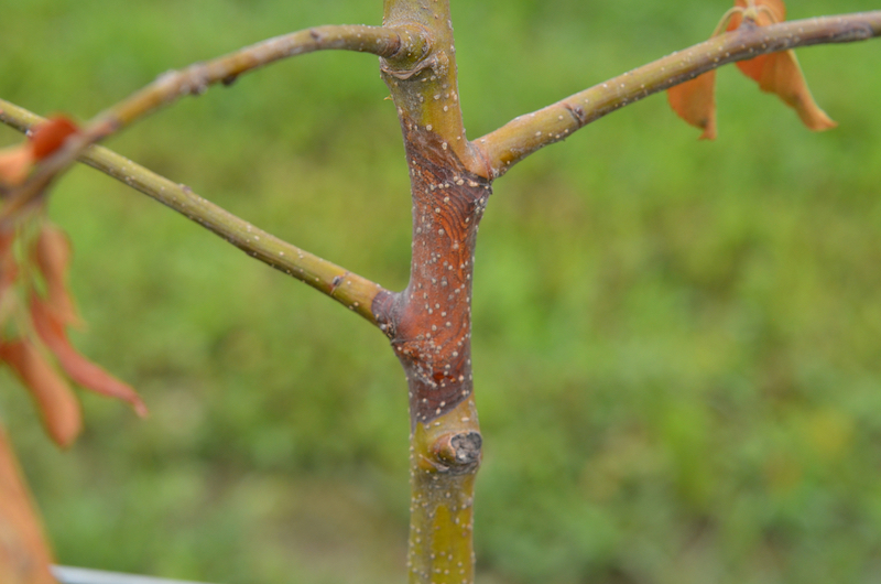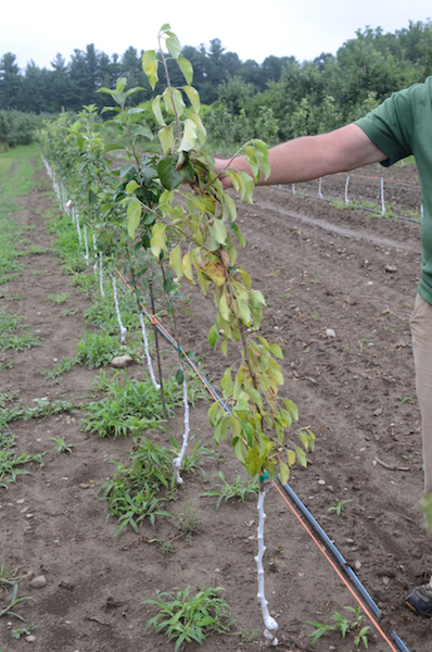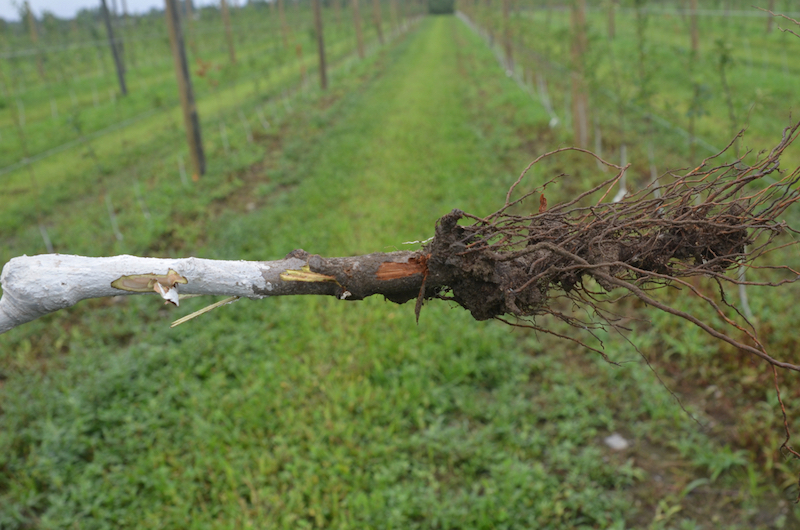 Complicating this, however, is the fact that Bud. 9 is supposed to be resistant to Phytophthora, however, as one of the world’s experts on Phytophthora of fruit trees, Wayne Wilcox, pointed out, resistance is not immunity. Resistance means a plant is less likely to get a disease like crown and root rot, but not that it never gets it. With enough “pressure”, such as a wet spring, transplant stress, plenty of Phytophthora, and heavy soils, apples can still get the disease. Dave Rosenberger and Wayne described situations where large percentages of MM.111, another resistant rootstock, were infected in New York orchards.