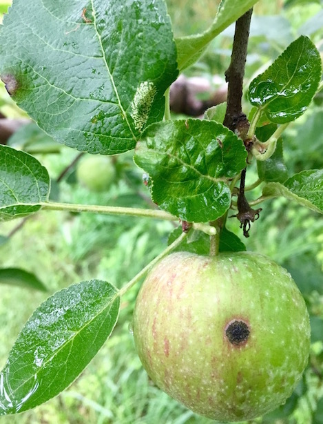No big surprise given the wet season that apple scab continues to show up. This year seems to have been especially tough for scab management. Must be payback for last year’s easy scab season. Flyspeck is beginning to show up. The first incidence was noticed yesterday. Seems a little odd not to have seen any sooner. No big rain in the immediate future, but it never hurts to keep your eye on the forecast!