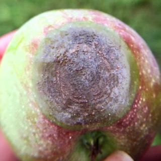 Bitter rot symptoms are showing up. Captan at the higher label rate will give you good protection while also burning out any active scab you may have floating around this year. (Do not tank mix Captan with Exirel.) Bitter rot has the potential to become problematic under hot wet conditions. Luckily, it looks like the temperatures will remain at 80 or below for the foreseeable future, however, the NOAA 30-day outlook is for greater chance of above normal temperatures for the rest of August. |