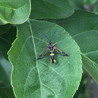 Dogwood borer are still out and about in apple orchards. Dwarf rootstocks with burr knots are particularly at risk. An earlier application of Lorsban to tree trunks (28 day PHI, only one application allowed) or deploying mating disruption is about all you can do at this time (until next year). Oh, and keeping the trunks free of weeds and debris is a good idea... | ![]() |
