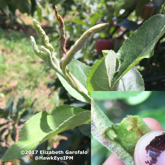 Apple leaf curling midge damage and larvae in western MA orchard, 23-August, 2017