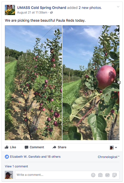 The next Healthy Fruit (which will be primarily the first apple maturity report) will be published on Tuesday, September 5, or thereabouts, 2017. As always feel free to get in touch with any member of the UMass Fruit Team (http://extension.umass.edu/fruitadvisor/team-members) if you have questions or comments.