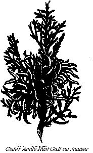 Cedar-apple rust is active now. The galls on junipers are shooting out bright orange spikes when they get wet. In Massachusetts, the problems with cedar-apple rust are usually minimal, by which I mean we hardly ever see any symptoms in commercial orchards. However, there are a few orchards which are, unfortunately, close to a large number of red junipers. Occaisionally, these orchards will have either leaf or fruit symptoms of rust. If an orchard is close to a large number of junipers, and these junipers produce brightly colored around apple bloom, consider using a scab fungicide that will also control rust. Fortunately, there are a number of them.All of the EBDCs (Polyram, Dithane, Penncozeb, Manzate, etc.) do an excellent job stopping rust. So do the sterol inhibitors (Nova, Rubigan, Procure). However, captan, Benlate, Topsin-M and Syllit are either ineffective, or have very little effect on rust.